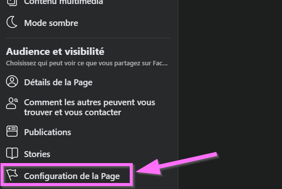 2 – Ensuite allez dans « Configuration de la Page »