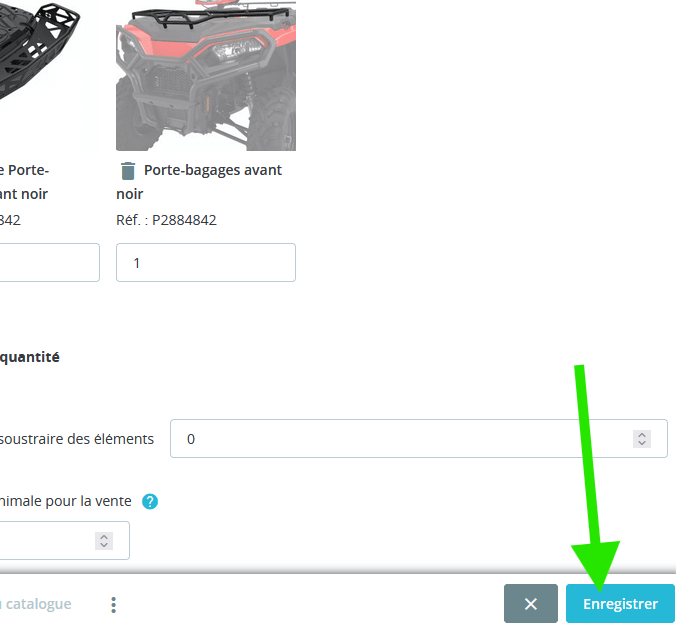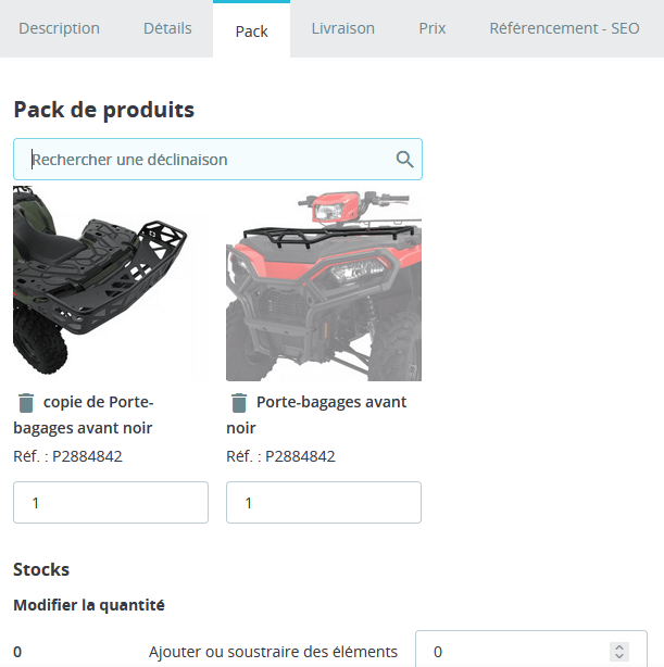 - Indiquez la quantité de ce produit que vous souhaitez inclure dans le pack.