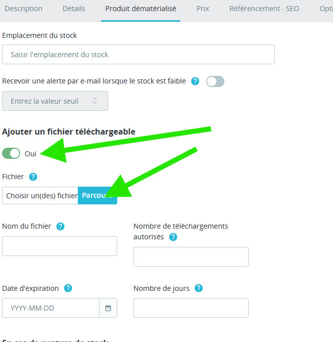 - Tout d’abord, gérez la quantité de stock de votre produit.
