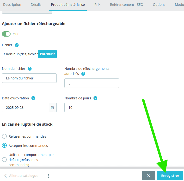 Vous avez configuré tous les paramètres spécifiques à votre produit dématérialisé. Il est maintenant prêt à être publié sur votre boutique.