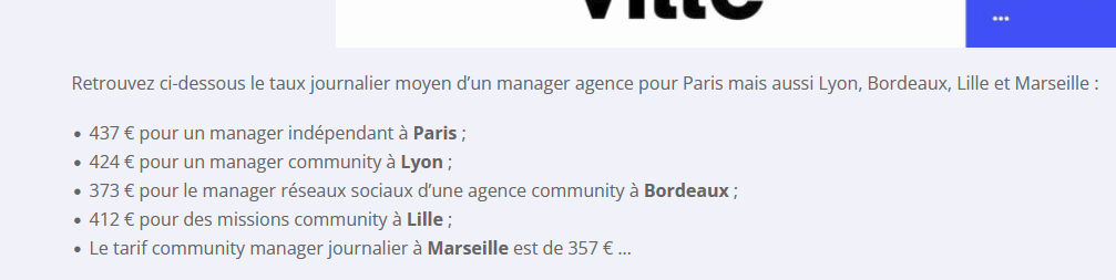 Pour le site commuity-manager.fr cela va de 357€ à Marseille à 437€ sur Paris.